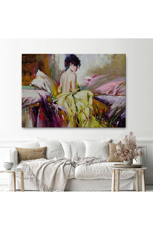 Yalnız Kadın Pastelboya Görünüm Dekoratif Kanvas Duvar Tablosu-3766
