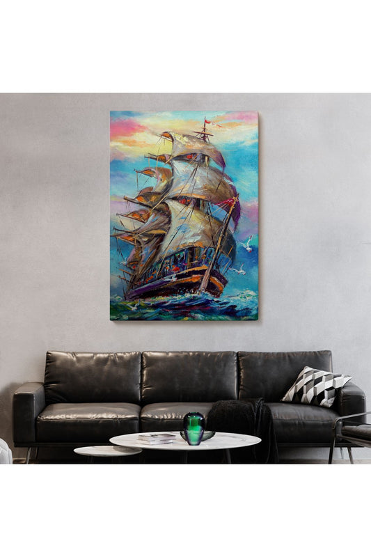 İndirim 60%Yağlı Boya Görünümlü Yelkenli Kanvas Tablo-5999