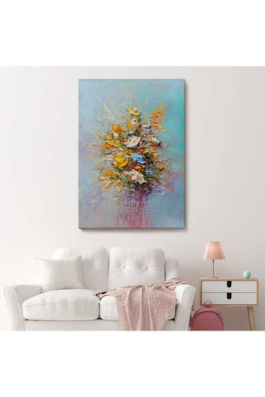 Yağlıboya Görünümlü Vazo İçerisindeki Renkli Çiçekler Duvar Tablosu-3635