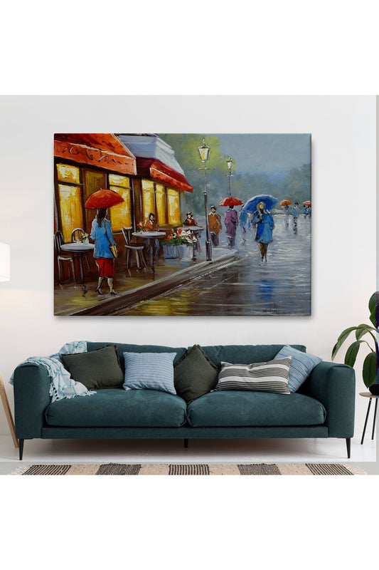 Yağmurlu Bir Gün Yağlıboya Görünüm Dekoratif Kanvas Duvar Tablosu-3669