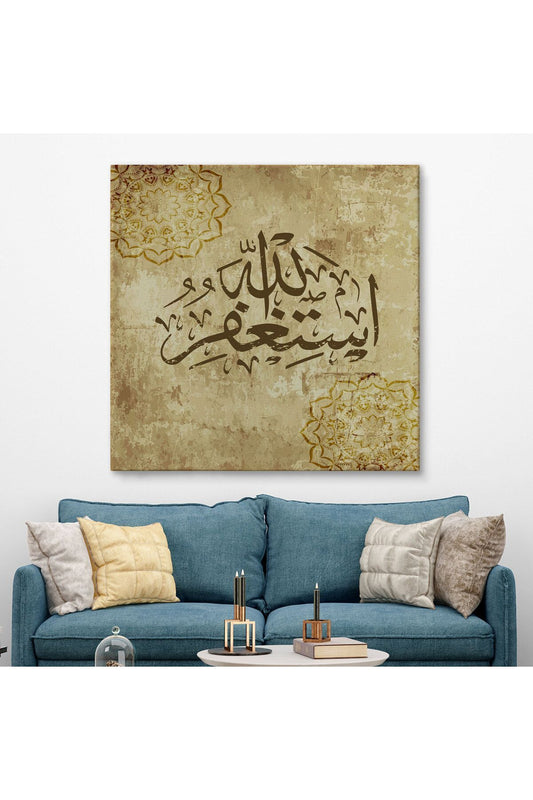 Yüce Allah'tan Mağfiret Dileyin ve O'na Tövbe Edin Yazılı Dekoratif Kanvas Tablo-3274