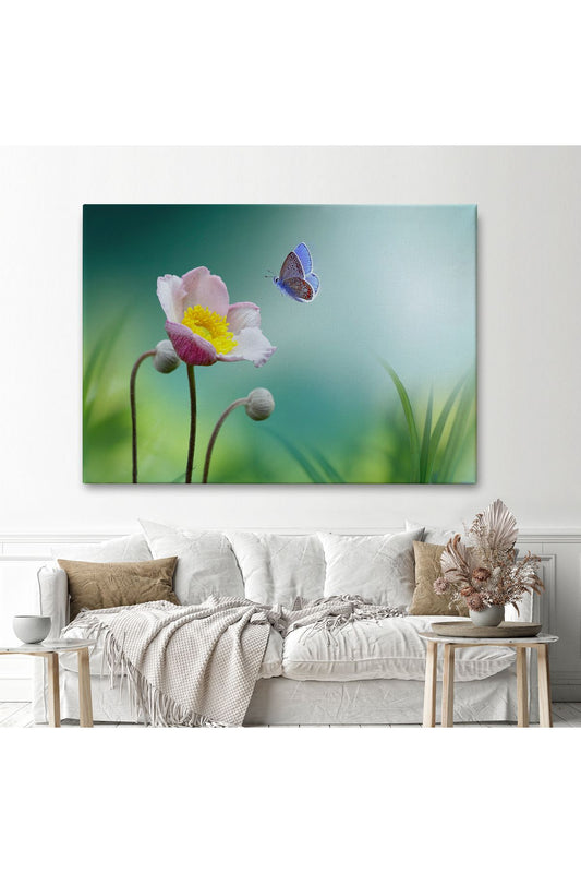 Zarif Çiçek ve Kelebek Dekoratif Kanvas Duvar Tablosu-3579