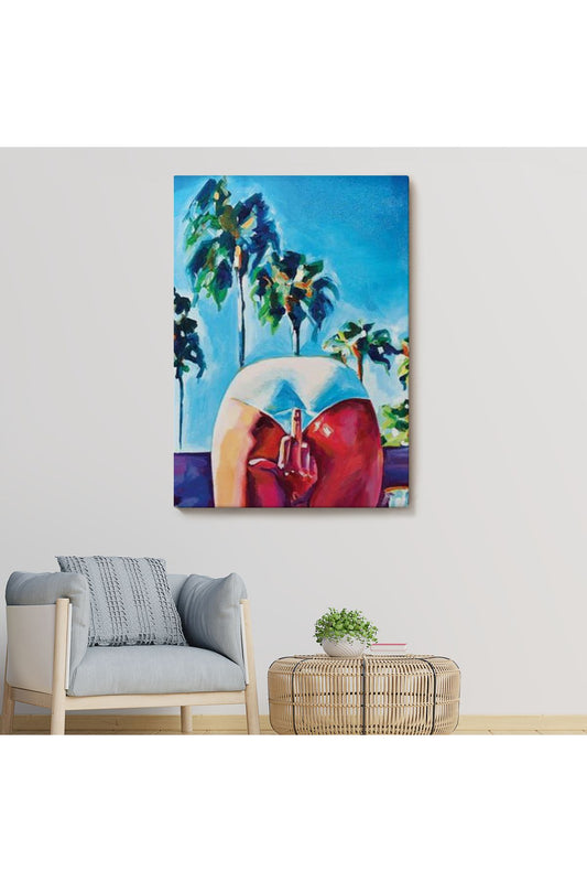 Bacaklarının Arasından Orta Parmak İşareti Yapan Kadın Tablosu-6082