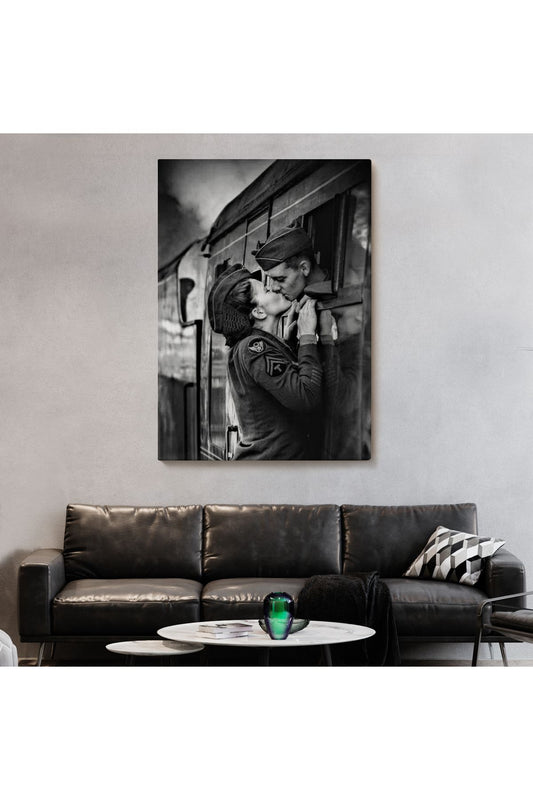 Ayrılık Zamanı Sevgilisi ile Trende Öpüşen Asker Kanvas Tablo-5227