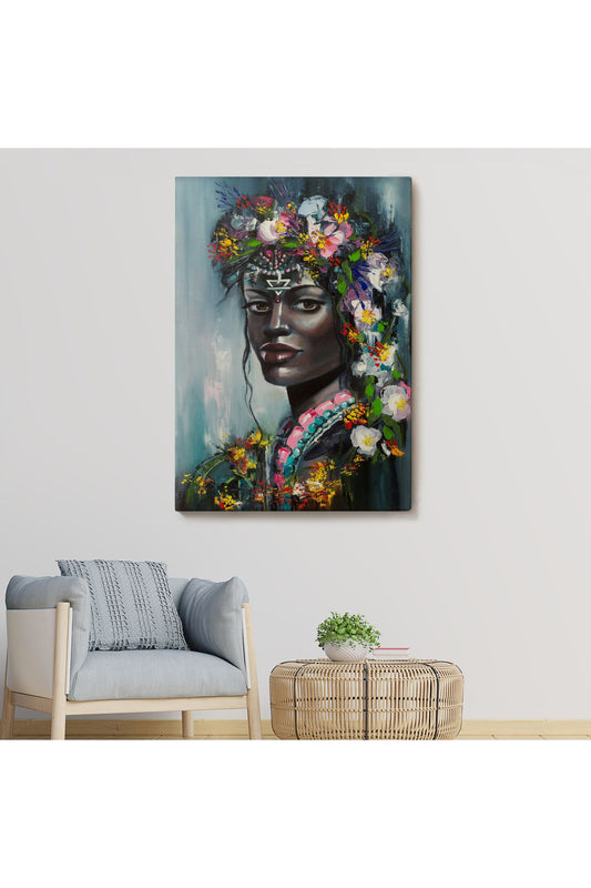 İndirim 60%Çiçek Taçlı Afrikalı Kadın Kanvas Tablo-5979