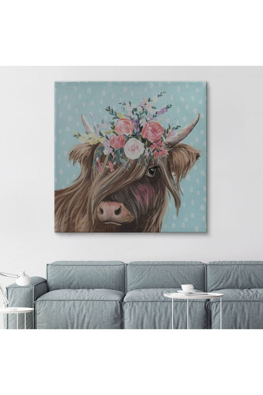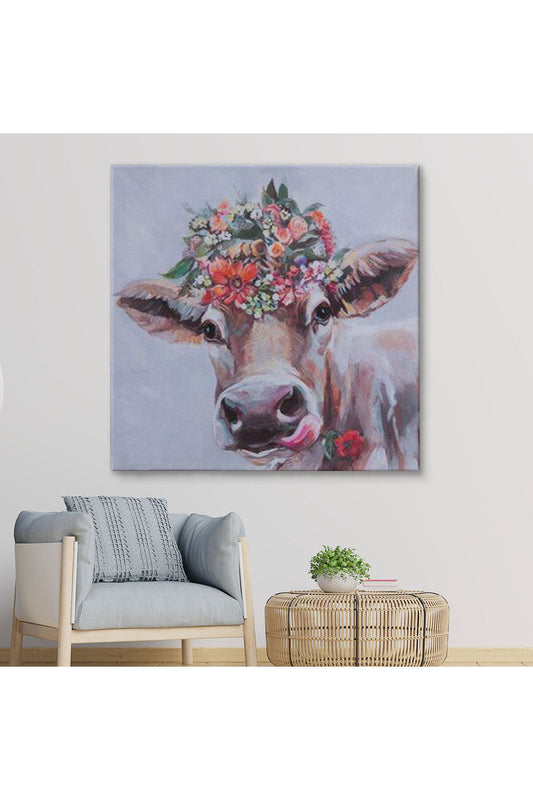 İndirim 60%Çiçek Taçlı Güzel Yayla İneği Kanvas Tablo-5878