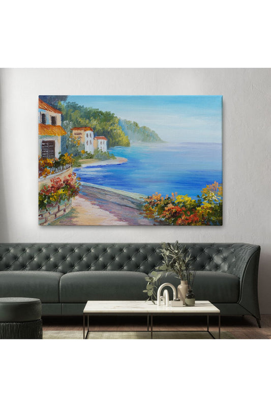 Deniz Manzaralı Güzel Ev Dekoratif Kanvas Duvar Tablosu-3439