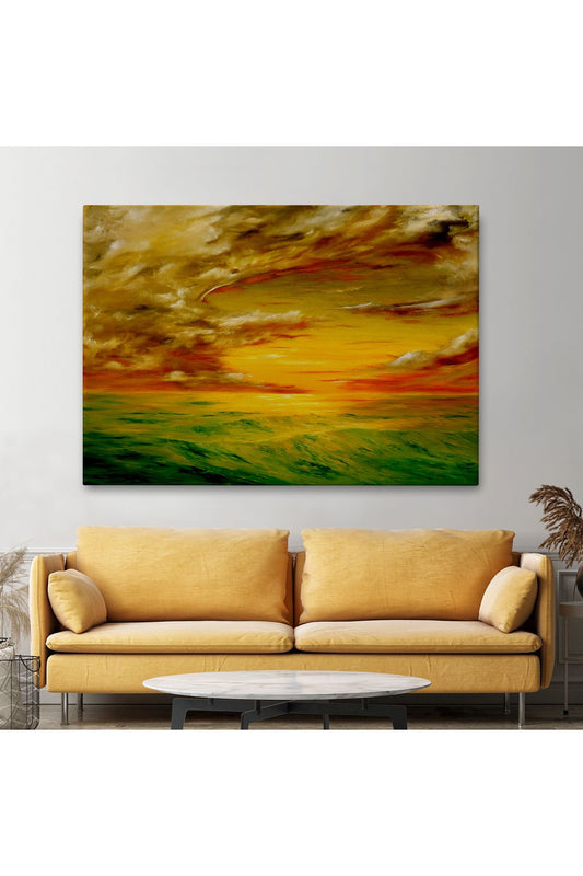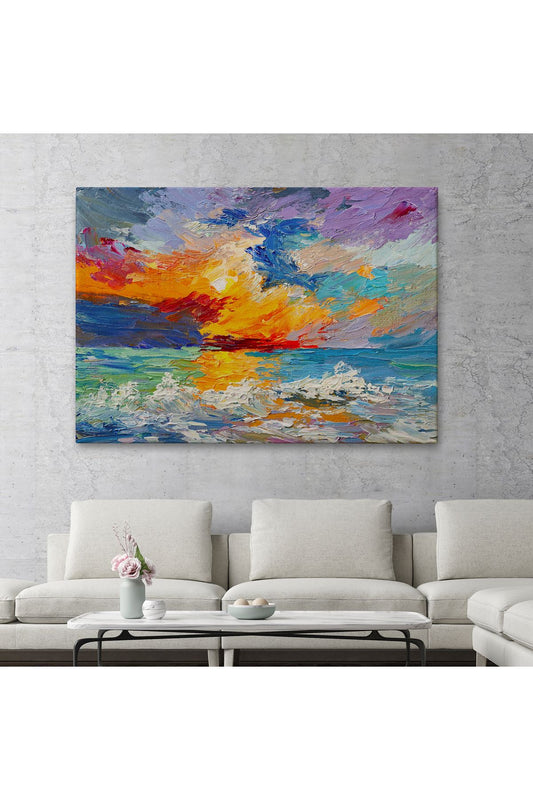 Denizde Gün Batımı Yağlıboya Görünüm Dekoratif Kanvas Duvar Tablosu-3525
