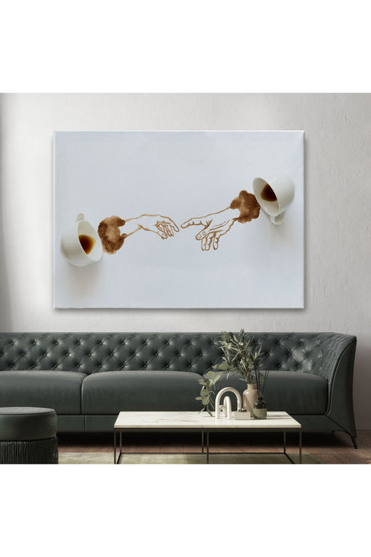 El Ele Espresso Fincanları Dekoratif Kanvas Duvar Tablosu-3639