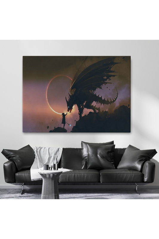 Ejderhasına El Uzatan Büyücü Sahnesi Dekoratif Tablo-3683
