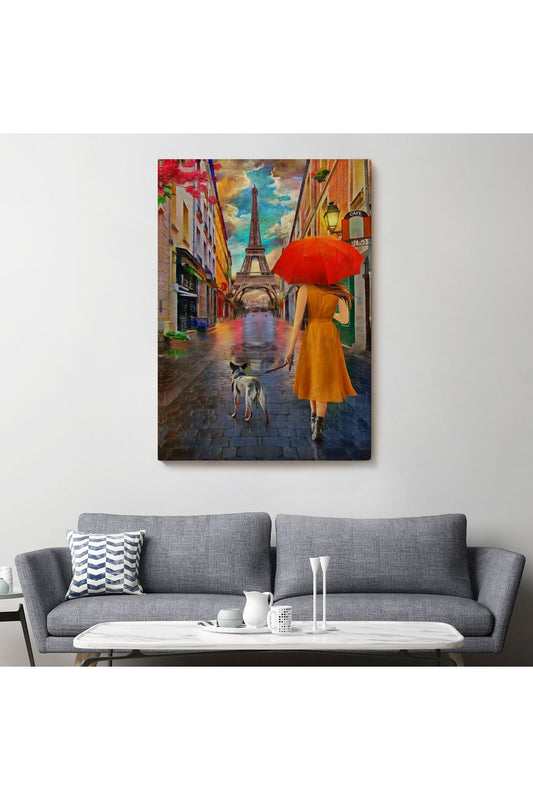 Eyfel Kulesine Yürüyen Kadın Yağlıboya Görünüm Dekoratif Kanvas Duvar Tablosu-5950