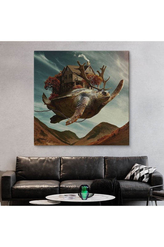 Evini Sırtında Taşıyan Uçan Kaplunbağa Sürreal Tablo-5868