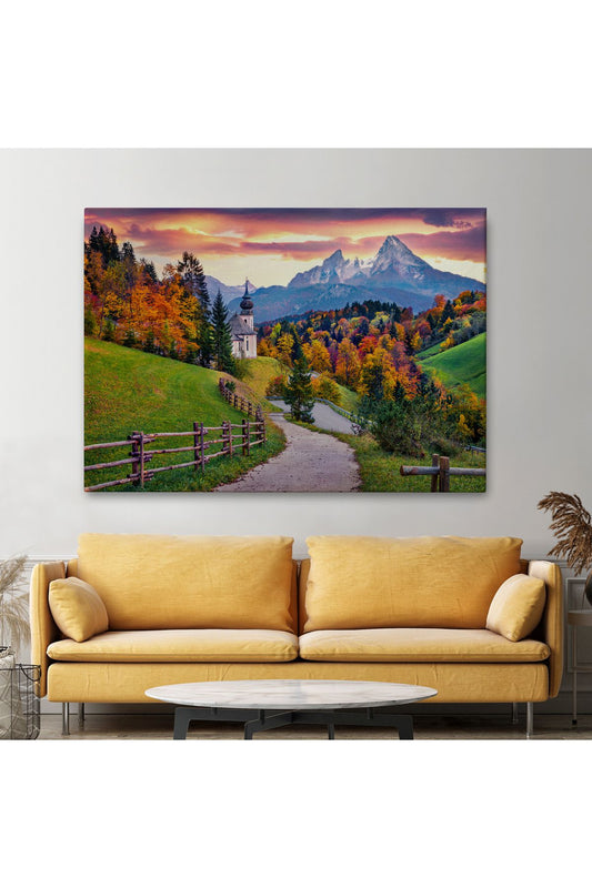 Hochkalter Dağı Maria Gern Kilisesi Ve Alpler Dekoratif Tablo-3679