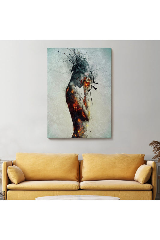 Mavi Kelebekli Kadın Yağlıboya Görünüm Dekoratif Kanvas Duvar Tablosu-5947