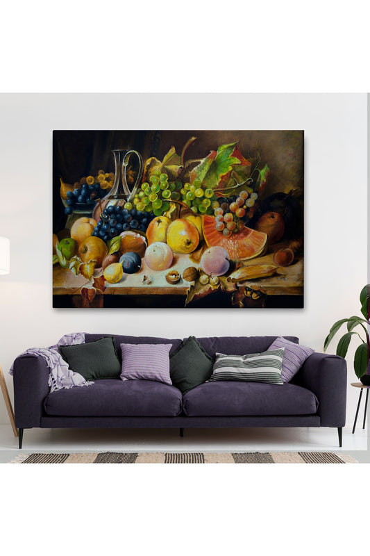 Masadaki Meyveler Yağlıboya Görünüm Dekoratif Kanvas Duvar Tablosu-3632