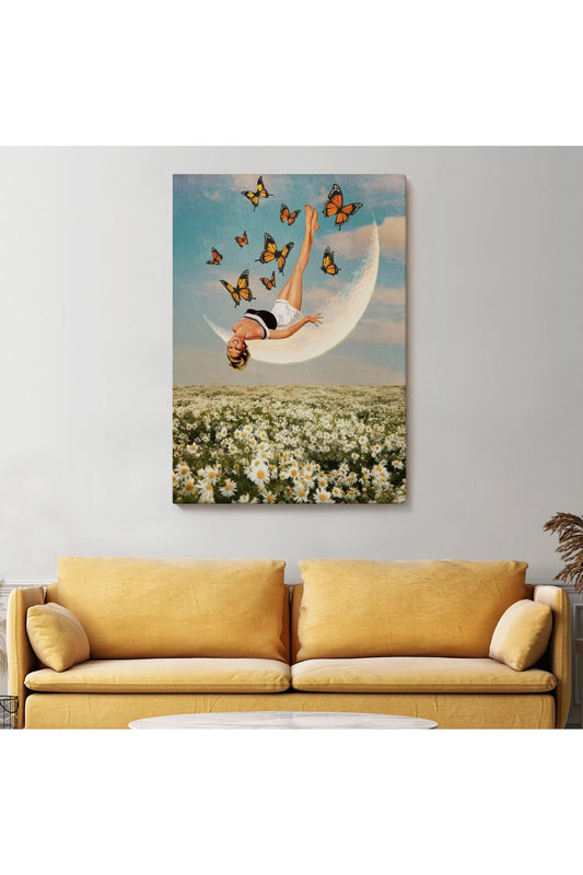Papatya Tarkası Üzerındeki Mutlu Kadın Duvar Tablosu-6274