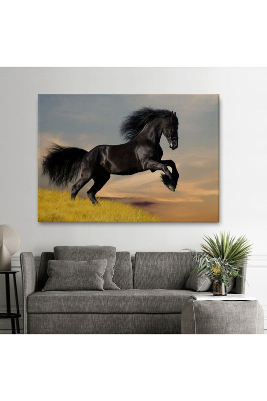 İndirim 60%Şaha Kalkmış Siyah At Tablosu-6620