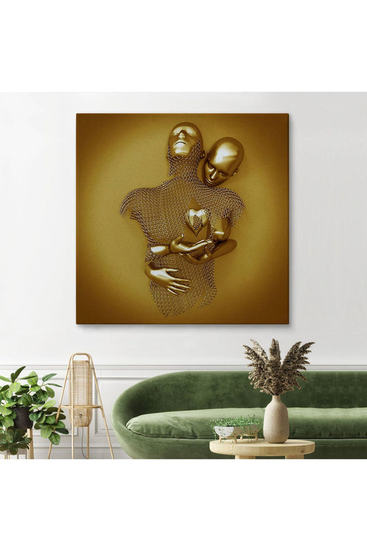 Romantik Beden, Aşk Sanatı, 3D Efekti Gümüş İnsan, Metalik Efektli Kanvas Tablo-5352