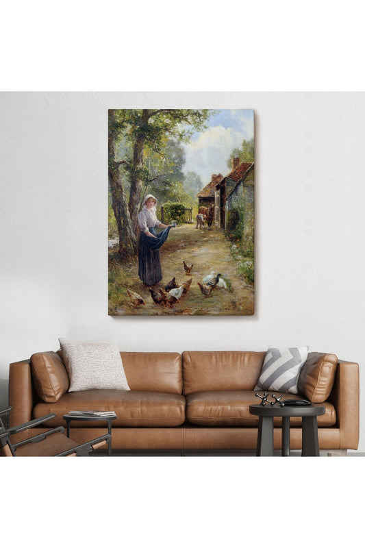 Rus Köylüsü Kadın ve Tavukları Duvar Tablosu-6055