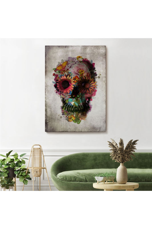 Şeker Kafatası Rengarenk Çiçekli Kafatası Ölülerin Günü Kanvas Tablo-5253