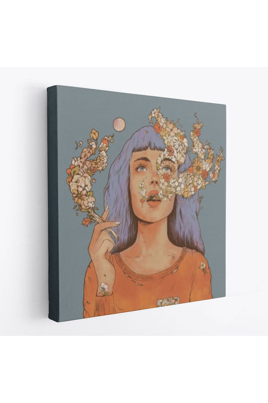Sigara Içen Kadın Çiçek Detaylı Kanvas Tablo-5877