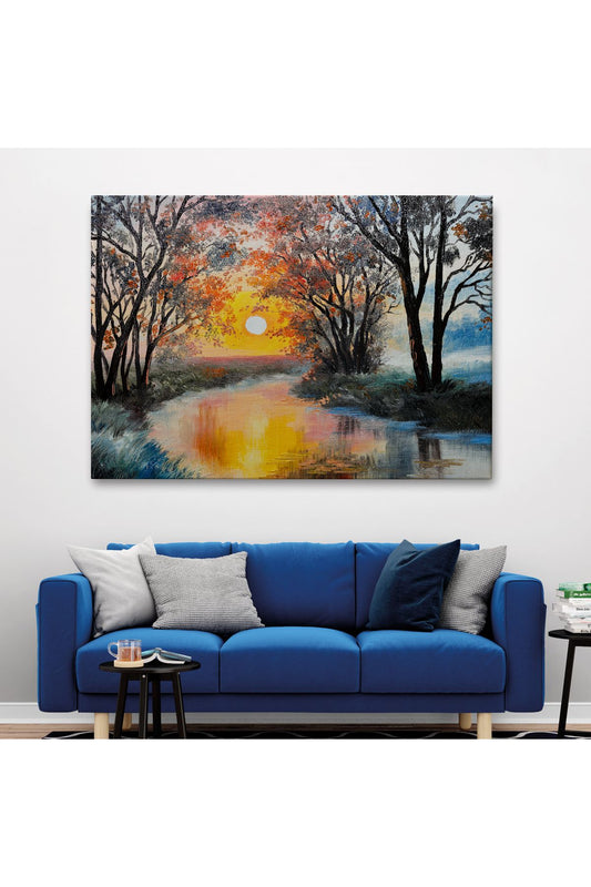 shn st0001 Kış Mevsiminde Karlı Bir Nehir Manzarası Duvar Tablosu-3464