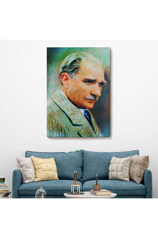 Atatürk Portre Tablosu Mustafa Kemal Atatürk Dikdörtgen Dekoratif Kanvas Tablo-cv-75