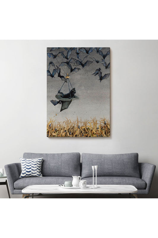 Tarla Farelerinin Üstünden Yarasaların Yardımı ile Uçan Kara Kedi Tablosu-6081