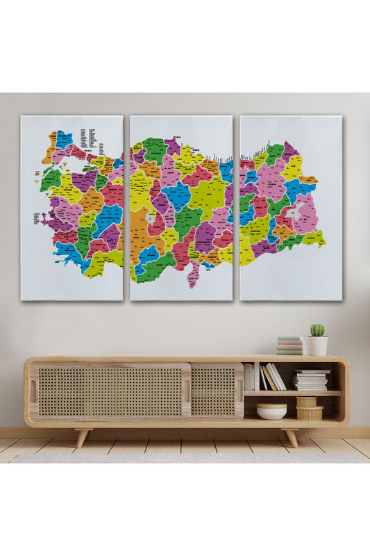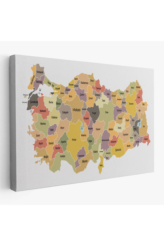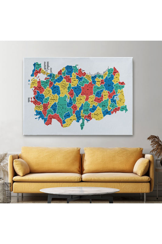 Türkiye Haritası Kanvas Tablo İl ve İlçeli Ayrıntılı Eğitici Dekoratif Tablo 3029
