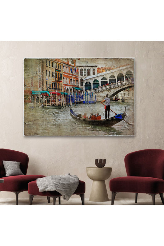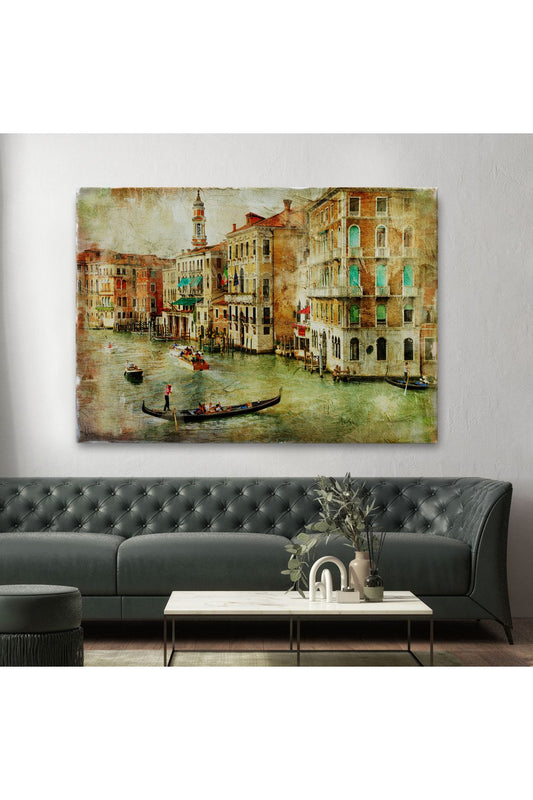 Venedik Kanalları Yağlıboya Çalışması Dekoratif Kanvas Duvar Tablosu-3428