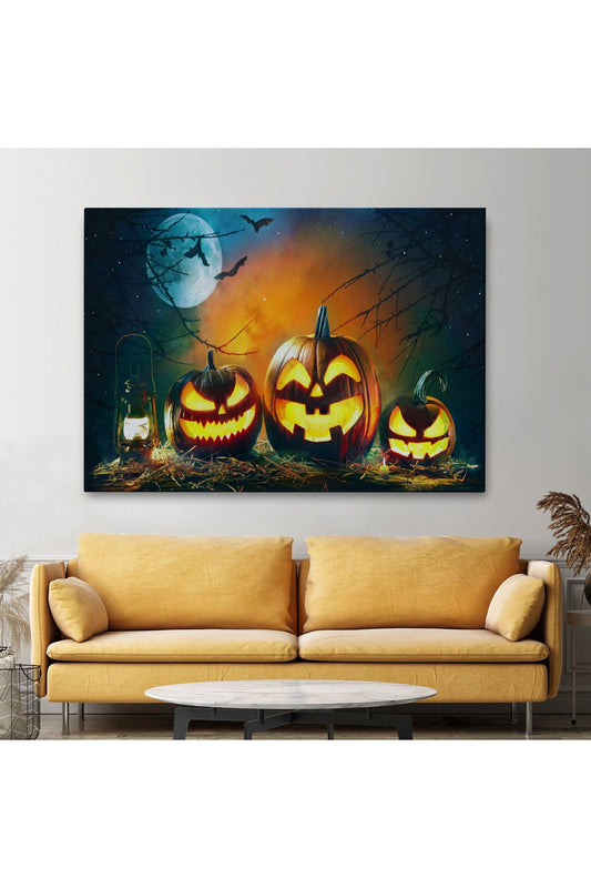 Gaz Lambası ve Oymalı Kabaklar, Cadılar Bayramı Dekoratif Duvar Tablosu-5199