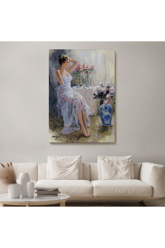 Beyaz Elbiseli Güzel Kız Dekoratif Duvar Tablosu-6108