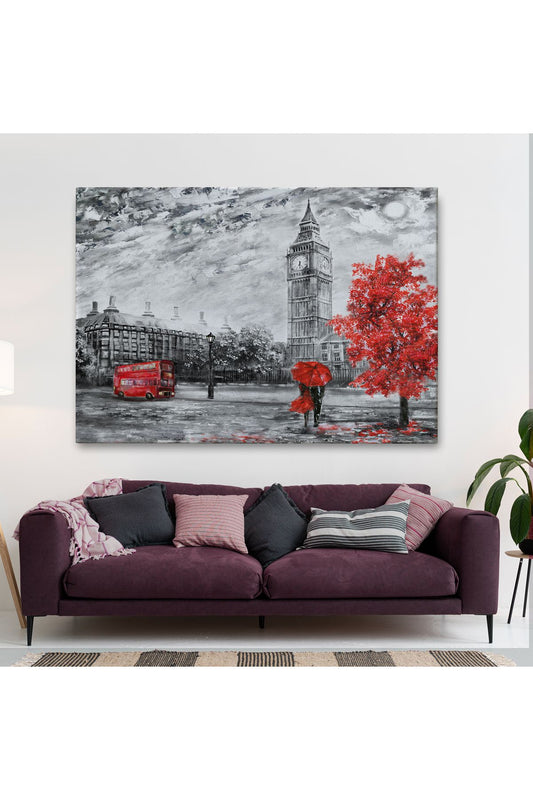 Londra Sokakları Yağlıboya Görünüm Dekoratif Kanvas Duvar Tablosu-3507