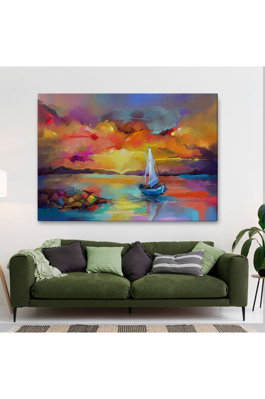 Denizdeki Yelkenli Yağlıboya Görünüm Dekoratif Kanvas Duvar Tablosu-3615