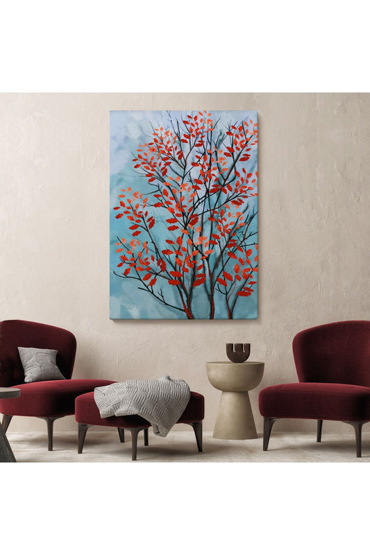 Kırmızı Yapraklar Soyut Dekoratif Kanvas Tablo-5179