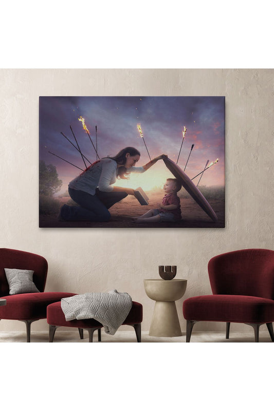 Çocuğunu Bilgi İle Koruyan Anne Kanvas Tablo, Kütüphane Posteri-5411