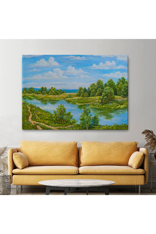 Rusya Nehri Yağlıboya Görünüm Dekoratif Kanvas Duvar Tablosu-3619