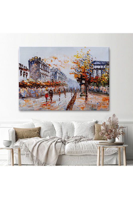Paris Sokakları Yağlıboya Görünüm Dekoratif Kanvas Duvar Tablosu-3483