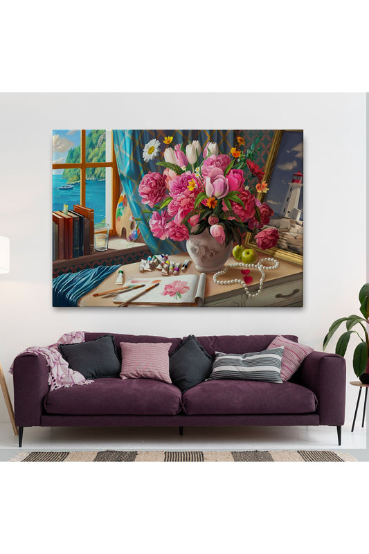 Deniz Manzaralı Yağlıboya Görünüm Dekoratif Kanvas Tablo-3621