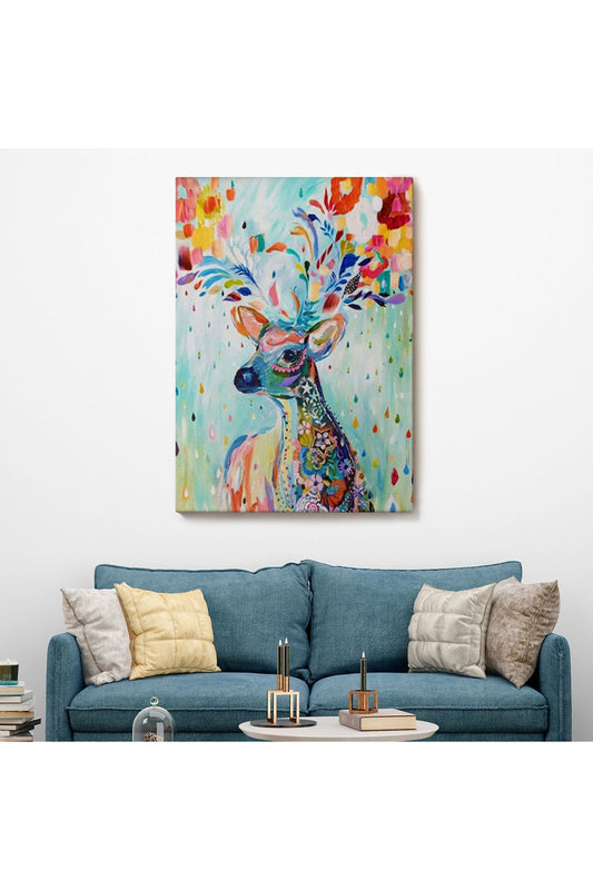 Renkli Çiçek Detaylı Geyik Dekoratif Duvar Tablosu-6196