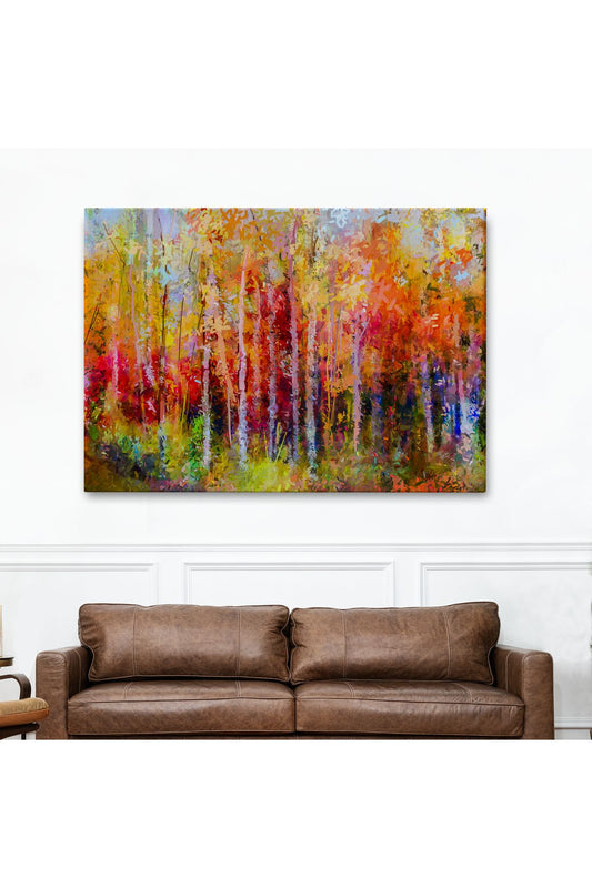 Son Bahar Ağaçları Yağlıboya Görünüm Dekoratif Kanvas Duvar Tablosu-3506