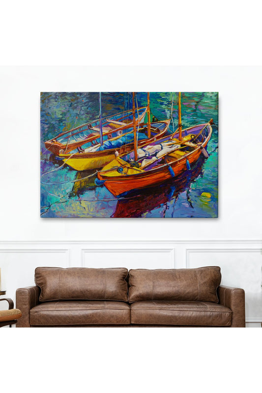 Okyanus Üzerinde Gün Batımı Tekne ve Deniz Kanvas Duvar Tablosu-1194