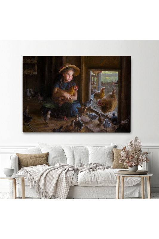 Kümesteki Küçük Kız Çocuğu Dekoratif Duvar Tablosu-6527