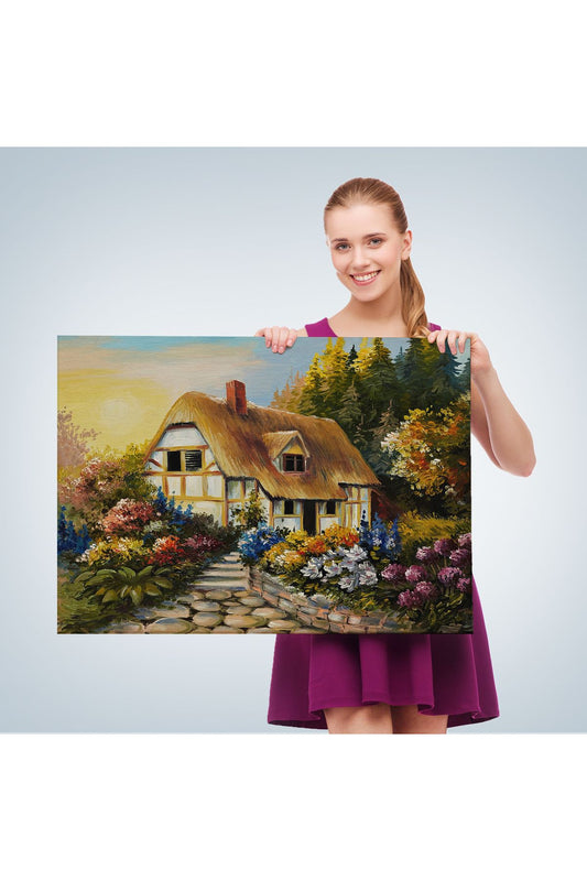 Bahçeli Orman Evi Yağlıboya Dekoratif Kanvas Duvar Tablosu-3447