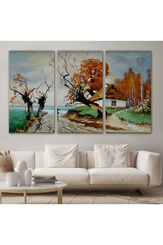 HG Sonbahar Köy Manzarası Dekoratif Duvar Tablosu-3473
