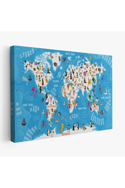YB Dünya Haritası Son Derece Ayrıntılı Eğitici Okyanuslu Dekoratif Kanvas Tablo 2525