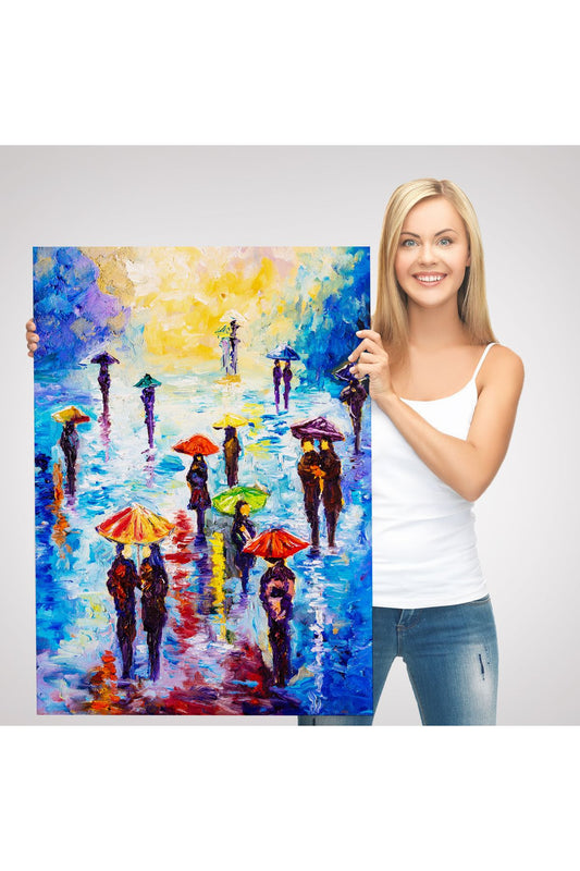İndirim 60%NW Özel Renkli Şemsiyeli İnsanlar Tablosu-5923