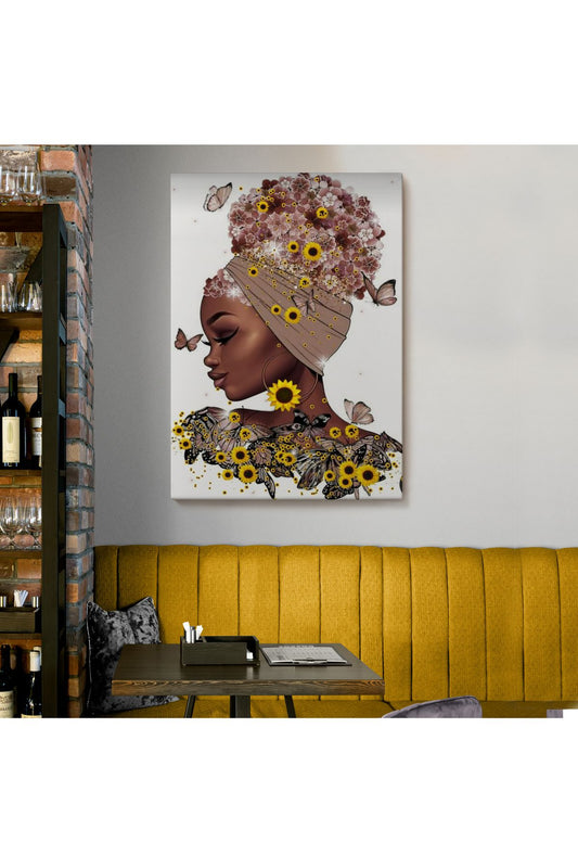 Kanvas Tablo, Duvar Dekoru, Afrikalı Güzel Kadın ve Çiçekler 6038 BUNGKNV