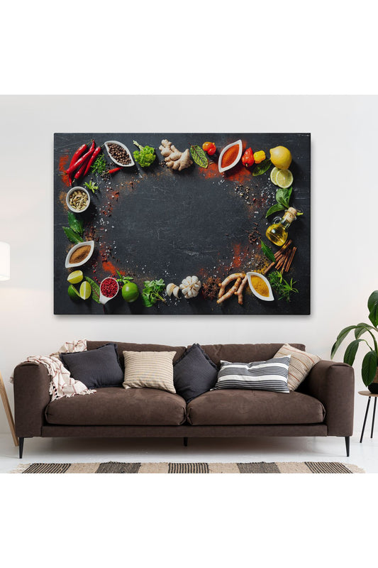 Mutfak Masasındaki Baharatlar Dekoratif Kanvas Duvar Tablosu-3727
