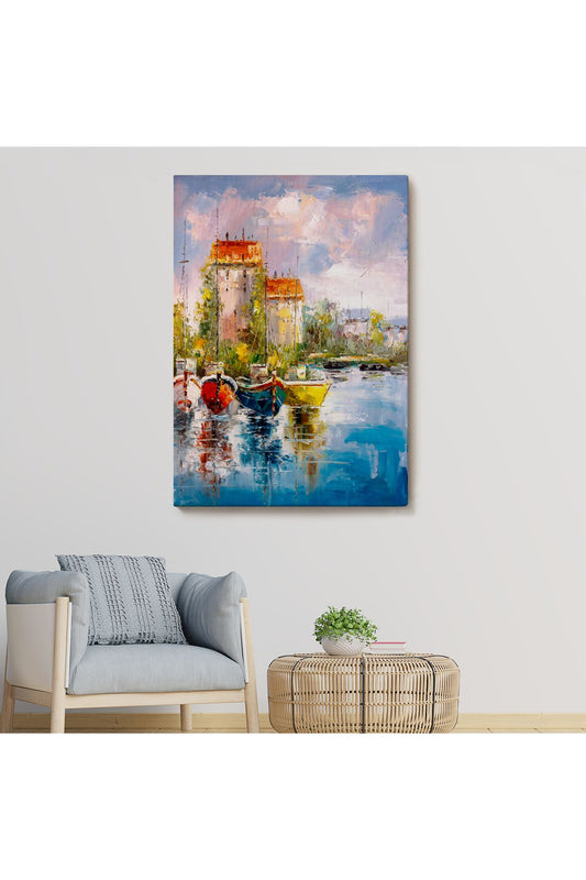 Liman Manzarası Yağlıboya Görünüm Dekoratif Kanvas Duvar Tablosu -5981